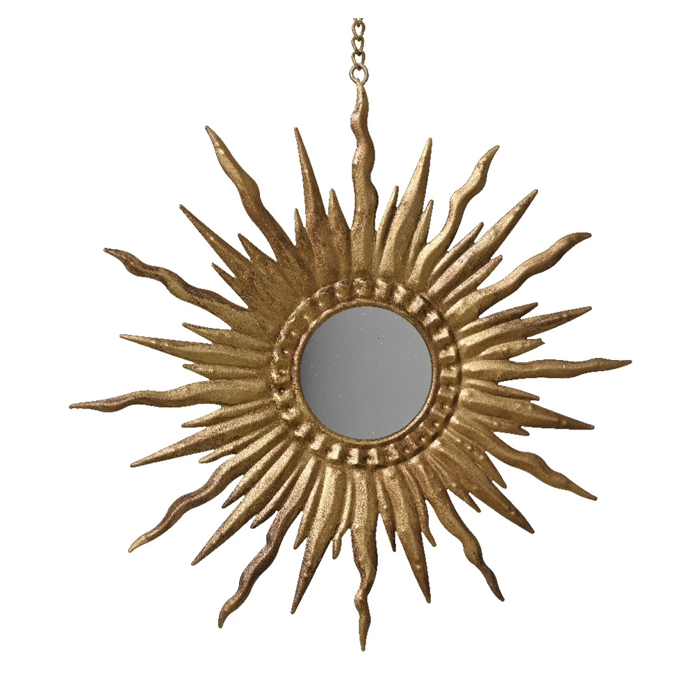Creëer een unieke kerstboom met de Kersthanger Zon IJzer Goud - Ø18 cm van Decoris! Deze kersthanger is een echte eyecatcher in de boom. De kersthanger is gemaakt van ijzer en heeft een klein spiegeltje in het midden en dus ook veilig voor kinderen en huisdieren.
