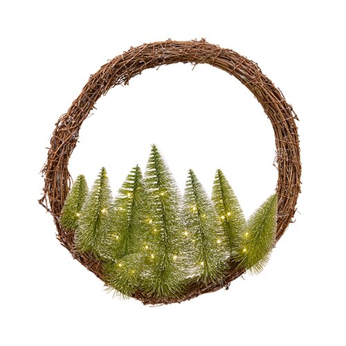 Met de Kerstkrans Mini Boom 50 cm van Buitengewoon Boet creëer je een echte kerstsfeer! Deze kunstkerstkrans is voorzien van een boomlandschap en LED verlichting. De kunst kerstkrans is in totaal voorzien van 30 LED lampjes die een warm wit licht afgeven. De verlichting kan ingesteld worden met een timer.