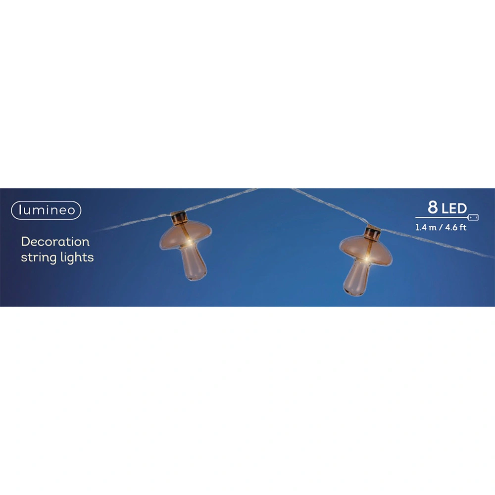 Breng warmte en sfeer in huis met deze Lumineo Kerstslinger LED Paddenstoel - 140 cm. Met 8 energiezuinige LED-lampjes is hij perfect voor feestdagen, themafeesten of gezellige avonden. Het artikel werkt op 2x AA batterijen, welke niet zijn inbegrepen. De verlichting is bedoeld voor binnen en is 140 cm lang en heeft een aanloopsnoer van 30 cm. De lampjes hebben een timerfunctie, waardoor de verlichting 6 uur brand en 18 uur uit staat.