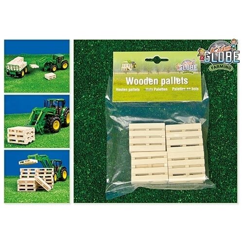 Kids Globe Houten Pallets - 8 st. is een set van 6 houten speelgoed pallets. Pallets zijn een handig middel voor het vervoeren van verschillende producten en mogen ook op de boerderij niet ontbreken! De pallets zijn gemaakt op schaal 1:32.