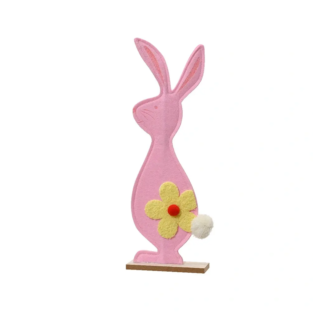 Creëer een gezellige paassfeer in huis met dit Konijn Staand Vilt 40 cm - Roze! Deze leuke paashaas maakt jouw paasdecoratie helemaal compleet en zet je superleuk neer op een tafel, plank of kast bij jou thuis.