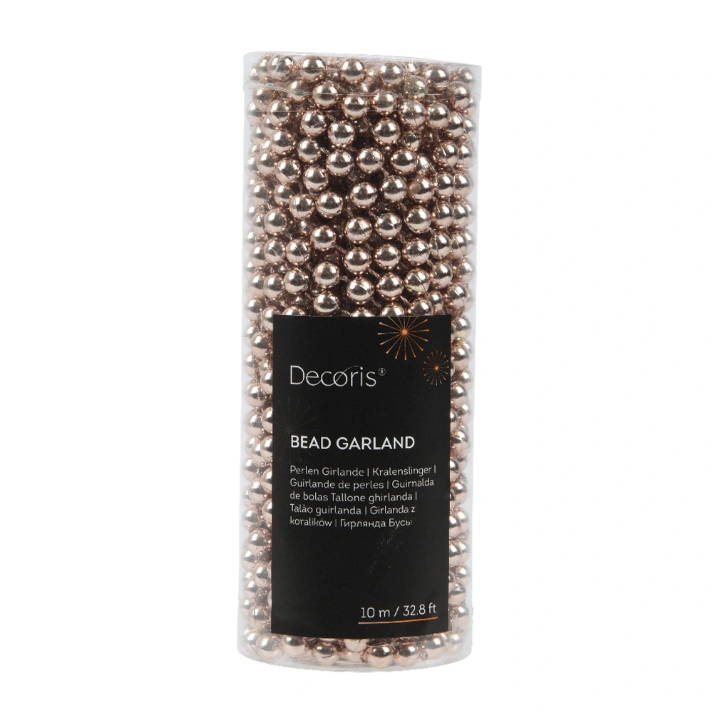 De Kralenketting - Peach Pearl van Decoris heeft een prachtige uitstraling en oranje/roze kleur! Je kan deze kralenslinger bijvoorbeeld als decoratie hangen in de kerstboom.