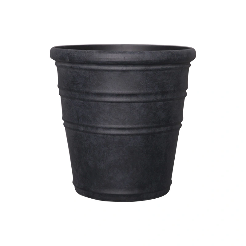 De Kunststof Bloempot Rib Double Charcoal Black - Ø40x42 cm is gemaakt van kunststof met een echte steenlook en is geschikt voor buiten.