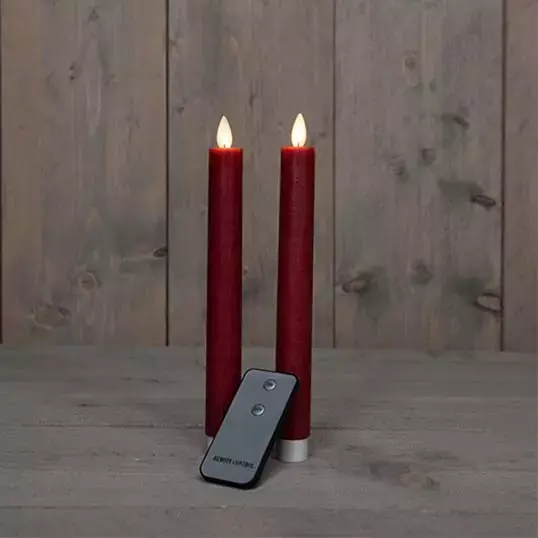 De LED Dinerkaarsen Rustiek Bordeaux 23 cm - 2 st. van Anna's Collection hebben een bewegende vlam en gaan super lang mee!