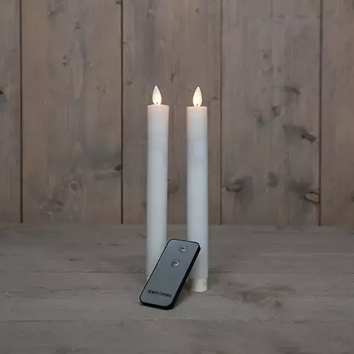 Een verpakking bestaat uit 2 dinerkaarsen én een afstandsbediening. De LED kaarsen werken op 2x AA batterijen welke niet zijn inbegrepen.