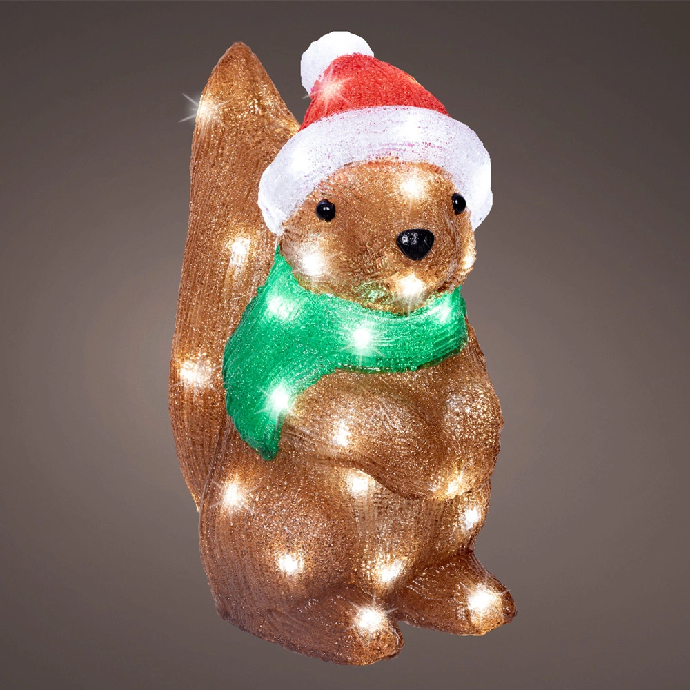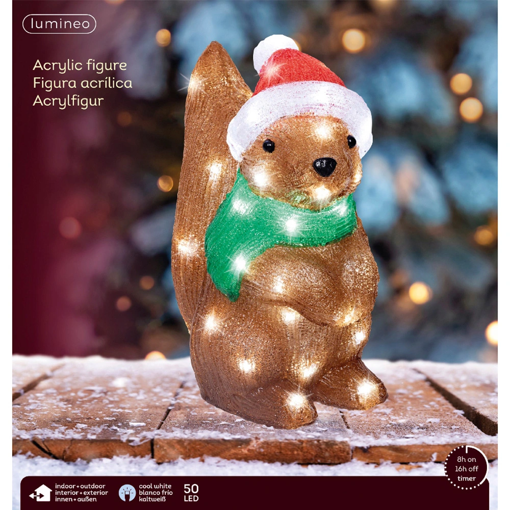 De LED Eekhoorn met Muts en Sjaal Acryl van Lumineo is geschikt voor binnen en buiten! Het verlichte kerstfiguur is voorzien van 50 LED lampjes die een koel wit licht afgeven.