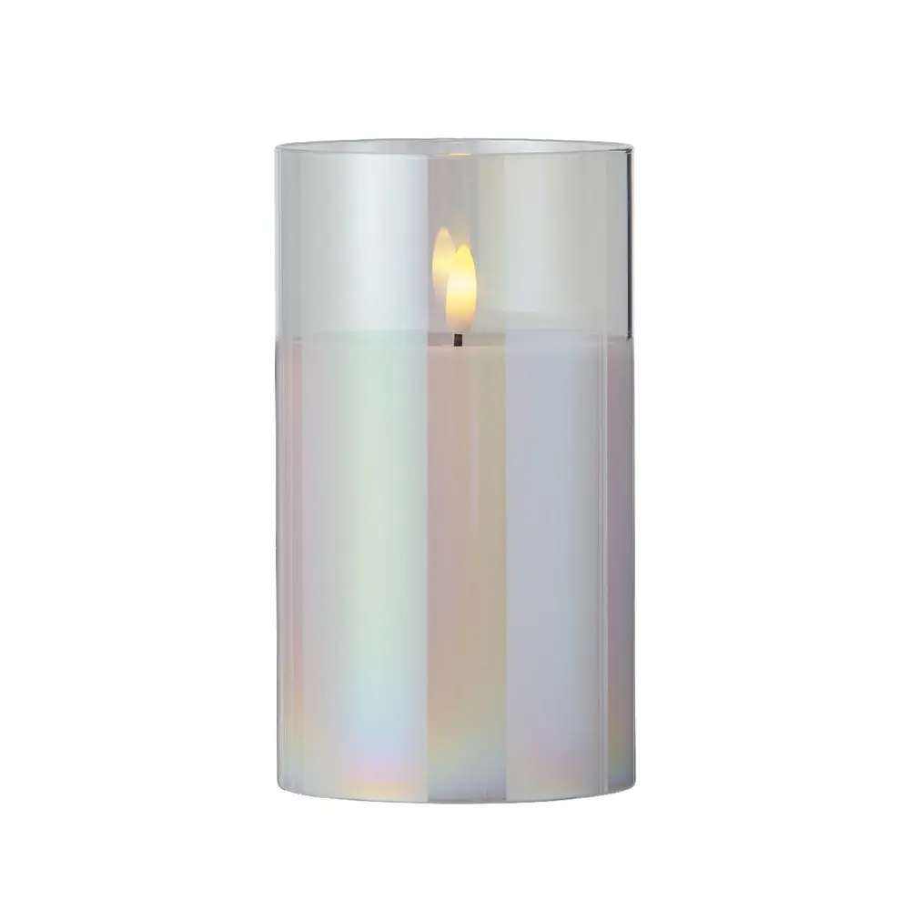 Met de LED Kaars in Glas Iris Wit - Ø10x17,5 cm maak je het direct gezellig in huis. De LED Kaars geeft een warm wit licht af.