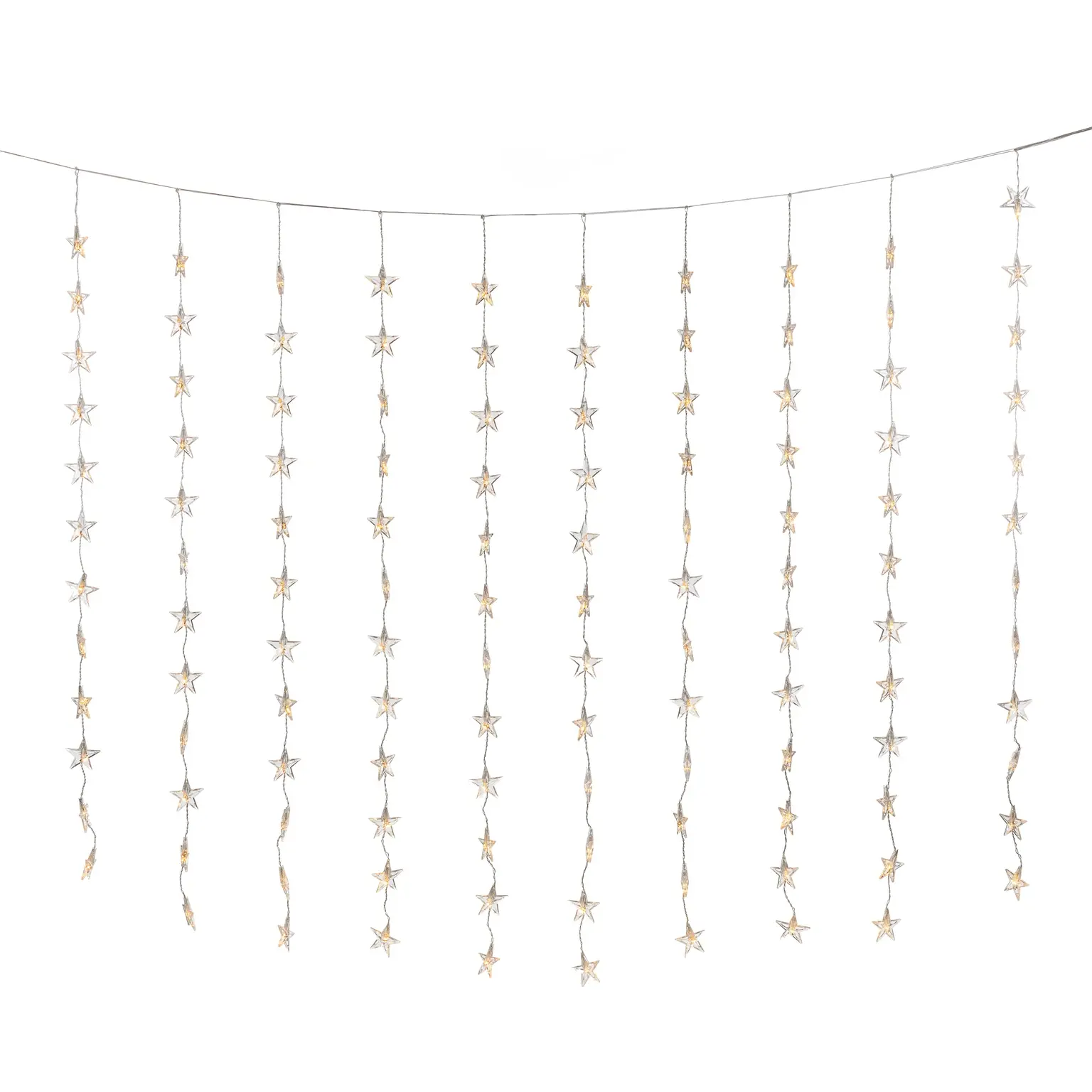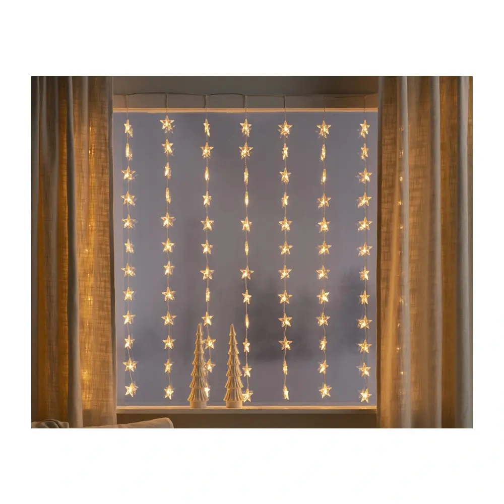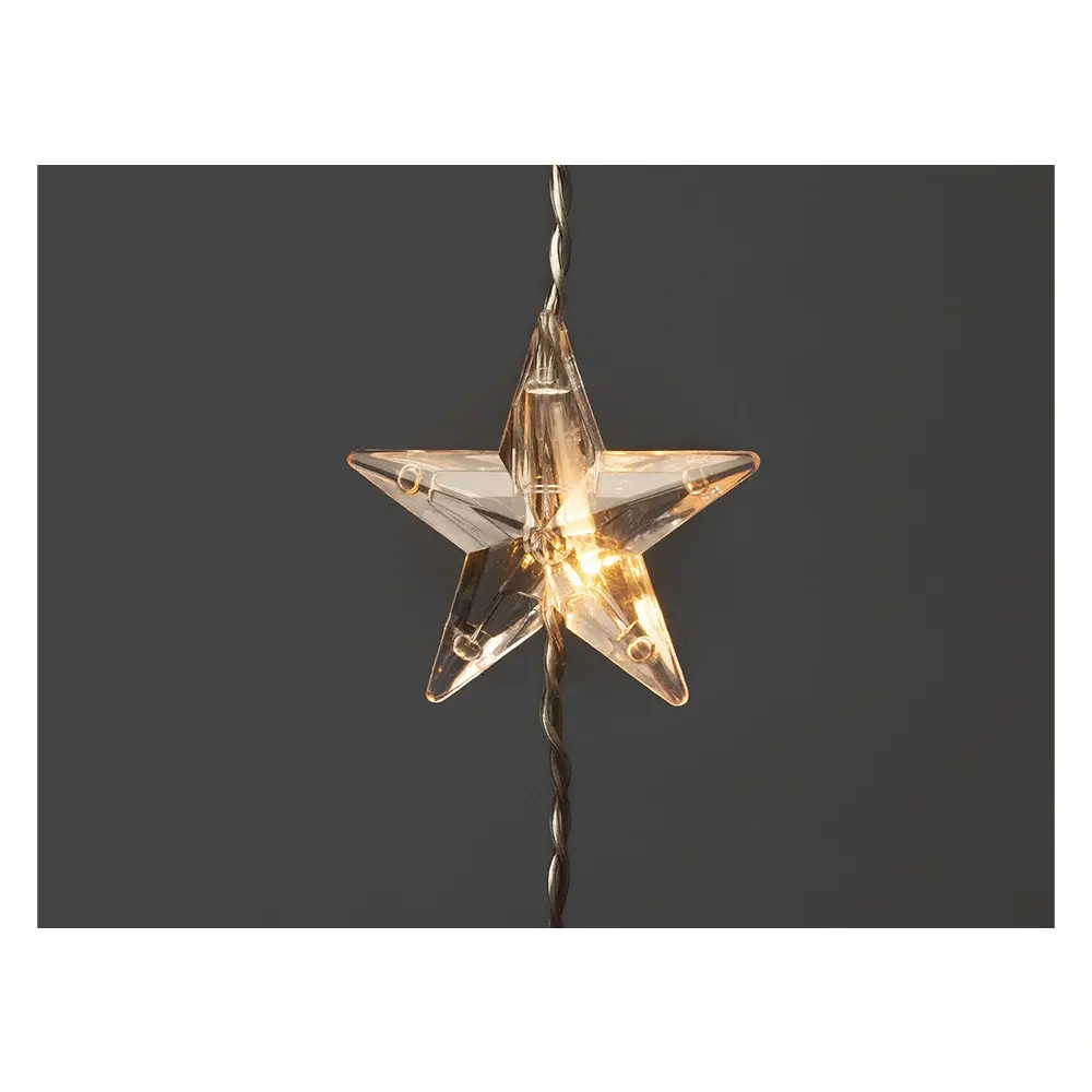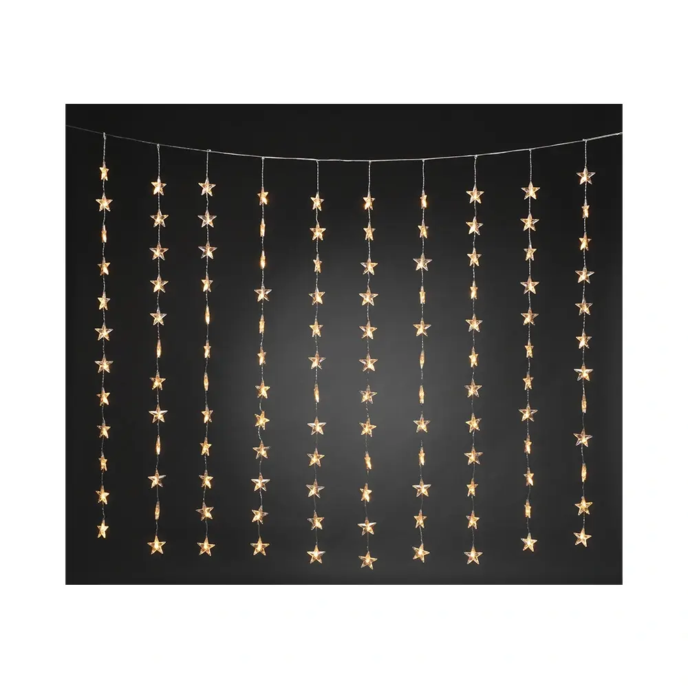 De LED Lichtgordijn Sterren - 140x120 cm van Konstsmide is voorzien van 120 LED lampjes die een warm wit licht afgeven. De gordijnverlichting heeft een transparante kabel.