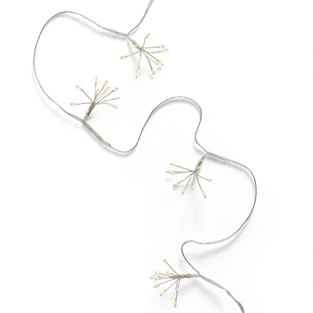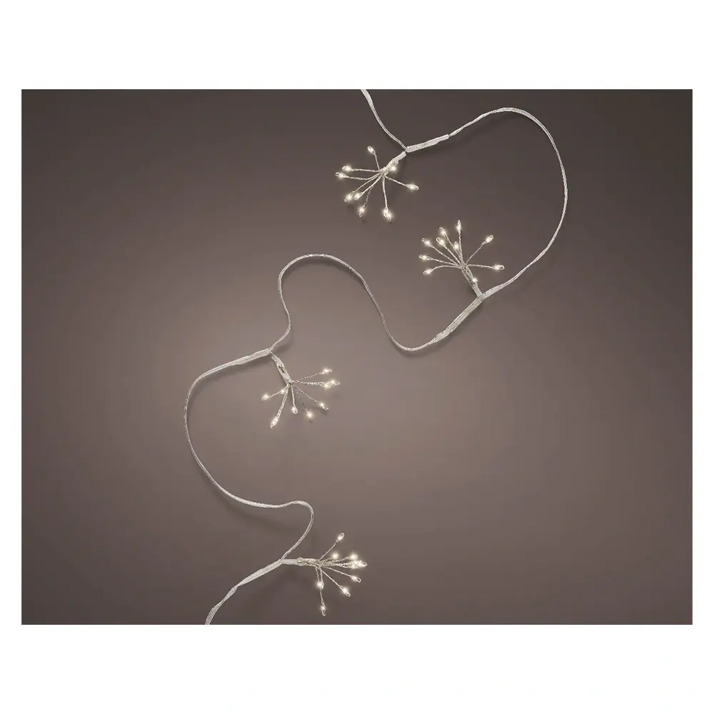 Deze verlichting is geschikt voor binnen. De lampjes kunnen worden ingesteld door middel van een timer. Schakel je deze in dan gaat de verlichting 6 uur lang aan en daarna 18 uur lang uit. Het zilveren draad heeft een lengte van 1 m en is voorzien van een transformator met een aansloopsnoer van 30 cm.