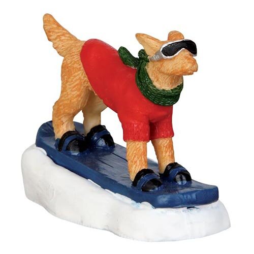 Lemax Snowboarding Dog behoort tot het thema Vail Village in de categorie dieren. Het product bestaat uit een hond die aan het snowboarden is.