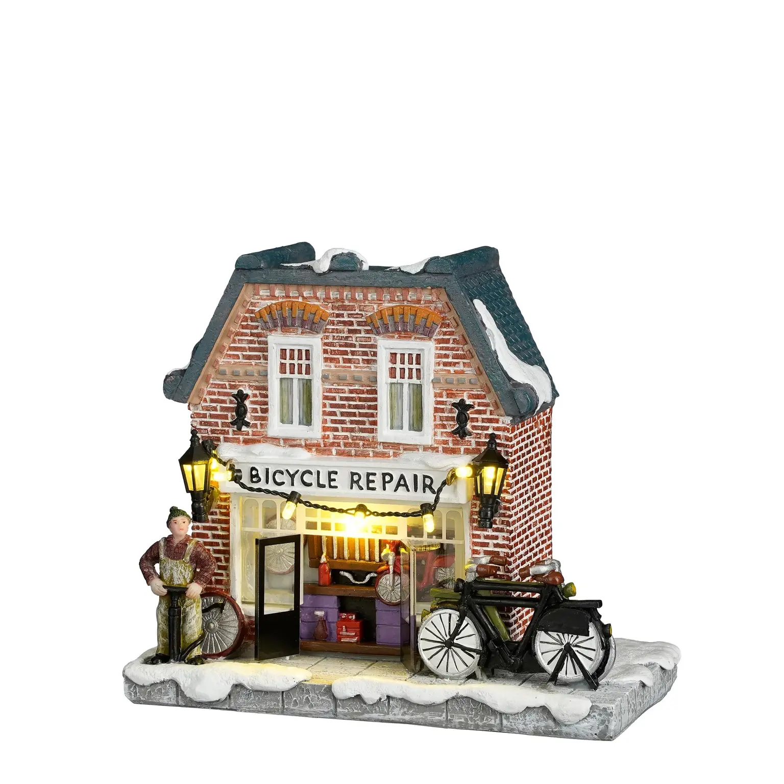 Luville Bicycle Repair Shop is een product uit het thema Molendam. Breng je kerstdorp tot leven met deze gedetailleerde Molendam producten.