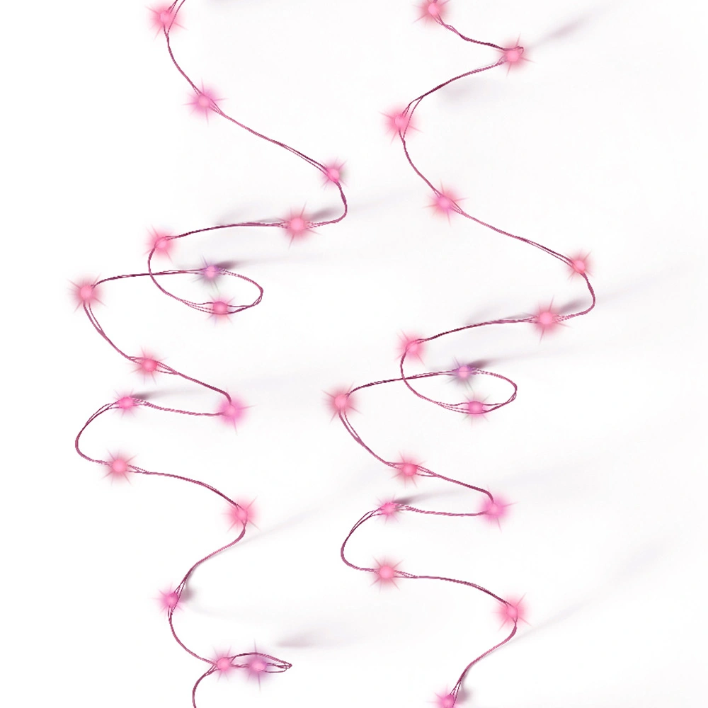 Deze verlichting is geschikt voor buiten. De lampjes kunnen worden ingesteld door middel van een timer. Schakel je deze in dan gaat de verlichting 8 uur lang aan en daarna 16 uur lang uit. Het roze draad heeft een lengte van 1195 cm en is voorzien van een aanloopsnoer van 5 meter.