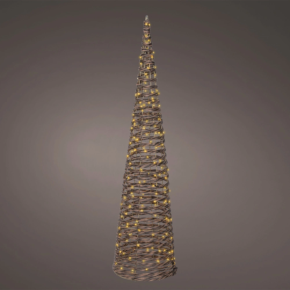 De Micro LED Kegel Wicker Bruin - Ø23x90 cm van Lumineo is geschikt voor binnen en buiten.