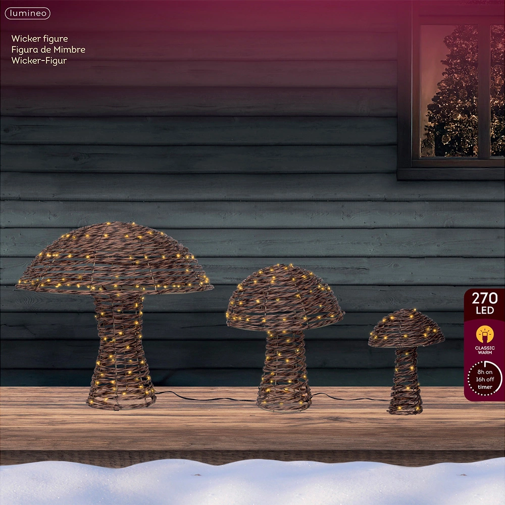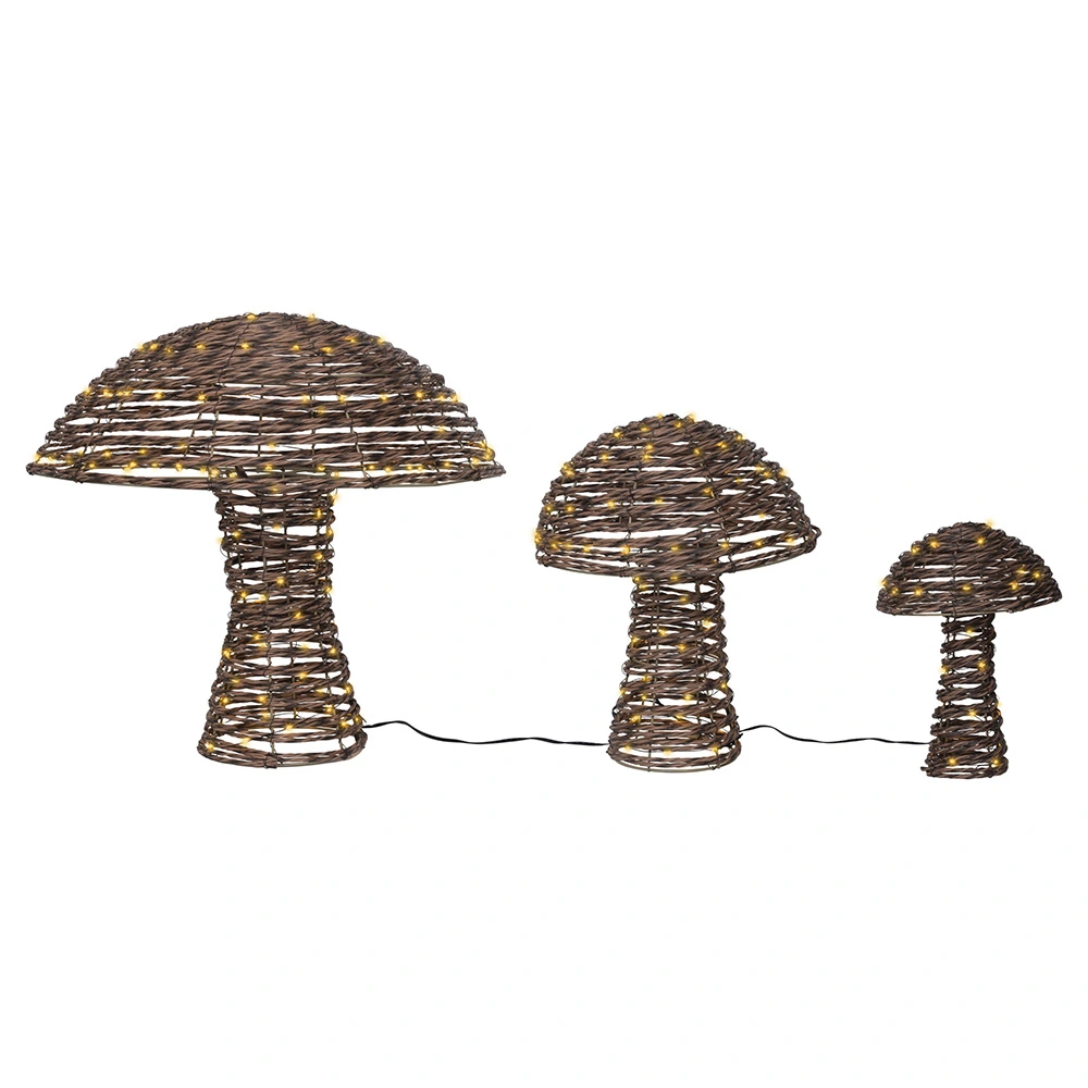 De Micro LED Paddenstoel Wicker Bruin - 45 cm van Lumineo zijn geschikt voor binnen en buiten! De verlichte figuren zijn voorzien van 270 LED lampjes die een klassiek warm licht/strong> afgeven.
