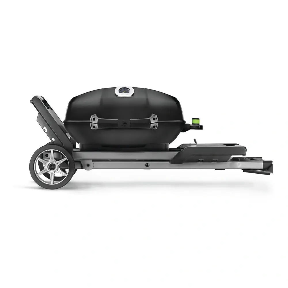Op de draagbare TravelQ™ PRO285EX elektrische grill met inklapbaar onderstel van Napoleon kan je gelijktijdig tot maar liefst 20 hamburgers grillen op een grilloppervlak van meer dan 1800 vierkante centimeter. De stijlvolle, volledig zwarte afwerking met verchroomde details past perfect bij elke tuindecoratie. Het hoge deksel van gegoten aluminium maakt grillen een gastronomische ervaring. Je kunt vertrouwen op deze mobiele barbecue om volledige kippen of kalkoenen te grillen, maar ook varkensvlees te braden en zelfs ribbetjes te bakken. Dichtschroeien is een warm kunstje en zodra je die karakteristieke grillstrepen ziet, weet je dat je een Napoleon met iconische RVS WAVE™-grillroosters hebt. Deze grill is alles wat je nodig hebt om overal te kunnen grillen, het heeft een wendbaar onderstel op all-terrain wielen, is eenvoudig in te klappen en in elkaar te zetten, en het heeft compacte opbergruimte en riemen voor de propaantank. Deze grill is perfect om overal mee naartoe te nemen. Deze professionele grill in draagbaar formaat is onverslaanbaar