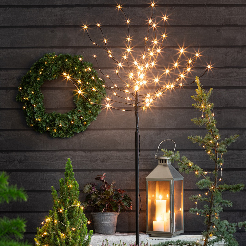 - Verlicht het pad en wikkel lichtsnoeren om bomen