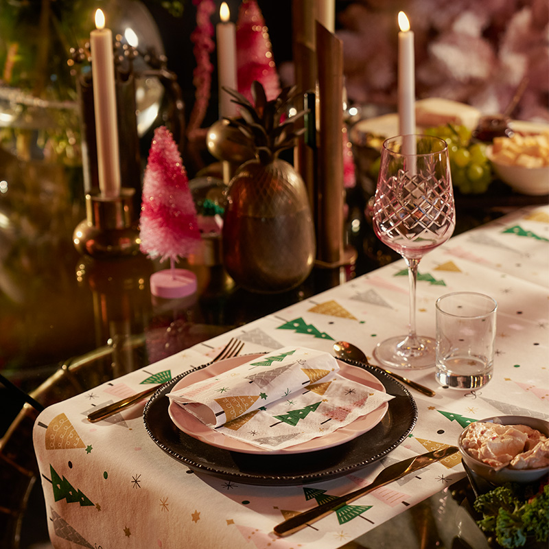 Wil je het wat voller? Leg een guirlande over de hele tafel. Werk het af met wat lichtjes ertussen en het ziet er direct feestelijk uit.