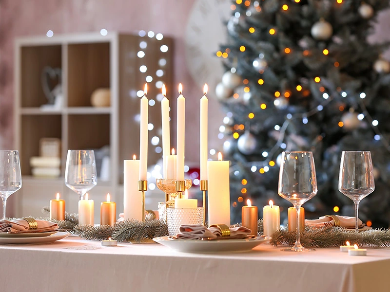 Kaarsen zijn echt het geheim van een goede kersttafel. Ze geven dat zachte licht waar iedereen meteen ontspannen van wordt. Echte kaarsen zijn het mooist, maar led kaarsen zijn ook prima. Die blijven de hele avond branden.