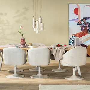 Strakke hoeken en rechte lijnen maken plaats voor zachte, organische vormen. Van eettafels met afgeronde hoeken tot oversized fauteuils waarin je helemaal wegzakt. Deze ronde vormen zorgen voor een vriendelijke en toegankelijke uitstraling. Ze nodigen uit om te genieten en maken een ruimte direct warmer.