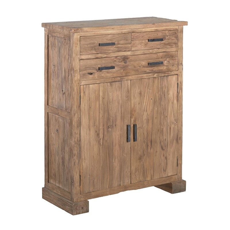 De Opbergkast Lorenzo 100x45x130 is houtkleurig en is voorzien van 2 deuren en 3 lades.
