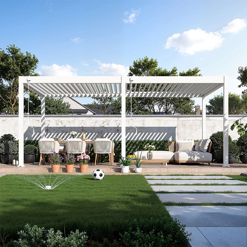 De overkapping is gemaakt van hoogwaardige en duurzame materialen. Het frame is vervaardigd uit aluminium, wat bekendstaat om zijn lichte gewicht, roestbestendigheid en hoge weerstand tegen weersinvloeden en UV-straling. De metalen lamellen zijn kantelbaar tot 135 graden, zodat je zelf bepaalt hoeveel zonlicht of schaduw je wilt. De stevige poten van 116 x 116 mm geven de constructie een robuuste uitstraling en zorgen voor extra stabiliteit. Alle schroeven zijn gemaakt van roestvrij staal (RVS) voor een lange levensduur.