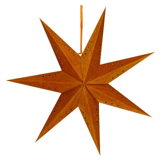 Deze kerstster is gemaakt van stevig papier en voorzien van een touwtje om aan op te hangen. Combineer meerdere papieren kerststerren met elkaar voor een betoverend effect!