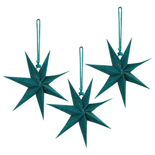 Laat de Papier Sterren 3st. 20cm - Teal van Buitengewoon Boet schitteren voor het raam, aan de deur of aan een muur! Het enige dat je hoeft te doen is de sterren uitvouwen.