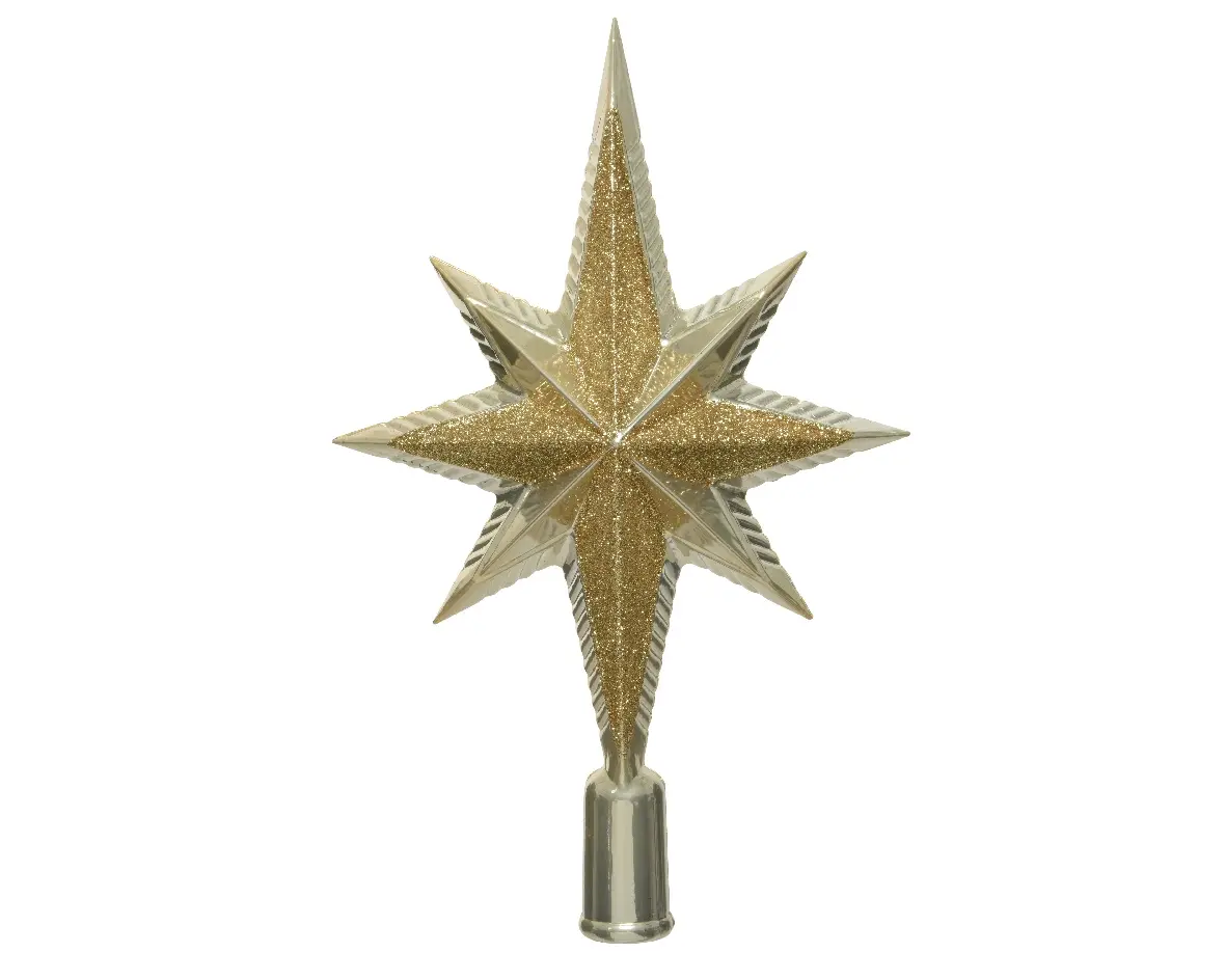 Maak de kerstboom helemaal af met de Piek Kerstster Glitter - Parel! Deze piek in stervorm is beige van kleur en is voorzien van glitters. De piek is gemaakt van kunststof en is daardoor niet breekbaar zoals veel andere kerstversiering. Je kan de plastic kerstboom piek gemakkelijk bovenop de kerstboom plaatsen door de opening aan de onderkant van de piek.