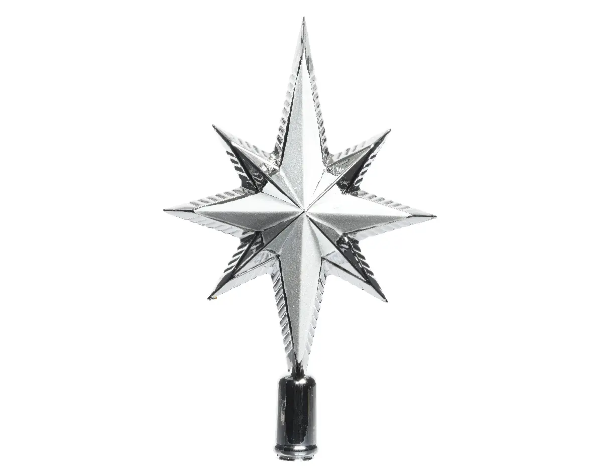 Maak de kerstboom helemaal af met de Piek Kerstster Glitter - Zilver! Deze piek in stervorm is zilver van kleur en is voorzien van glitters. De piek is gemaakt van kunststof en is daardoor niet breekbaar zoals veel andere kerstversiering. Je kan de plastic kerstboom piek gemakkelijk bovenop de kerstboom plaatsen door de opening aan de onderkant van de piek.