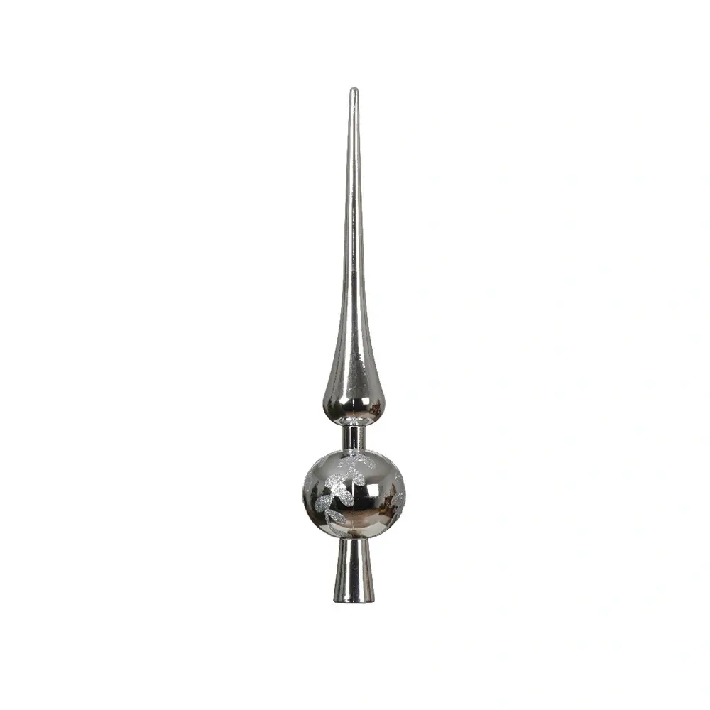 Maak de kerstboom helemaal af met de Piek met Glitter Leaf - Zilver! Deze piek is zilver van kleur en is voorzien van een blaadjes motief met glitter. De piek is gemaakt van kunststof en is daardoor niet breekbaar. Je kan de kunststof kerstboom piek gemakkelijk bovenop de kerstboom plaatsen door de opening aan de onderkant van de piek.