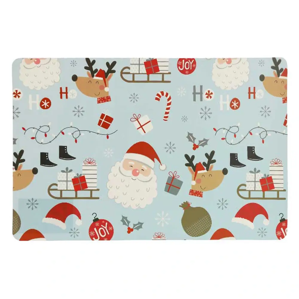 Creëer een sfeervolle kersttafel met de Placemat Present 43,5x28,5 cm - Blauw. De placemat is van hoogwaardige kwaliteit en staat mooi op elke kersttafel. De placemat heeft een rand met kerstbomen.