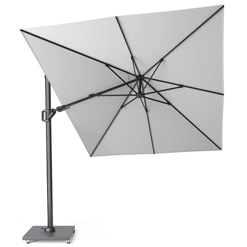 De Challenger T² 3,5x2,6 - White van Platinum is voorzien van het unieke T² kantelsysteem met rvs binnenwerk. Hierdoor kun je de zweefparasol traploos zijwaarts en achterover kantelen. De parasol is 360 graden draaibaar. Zo kun je altijd in de schaduw zitten zonder de parasol te verplaatsen! De Challenger T² zweefparasol is uitgevoerd met een 300 grams polyester doek in de kleur wit en is voorzien van water- en vuilafstotende coating en doekspanners. Dit doek heeft een goede mate van kleurechtheid, getest in klasse 5-6.