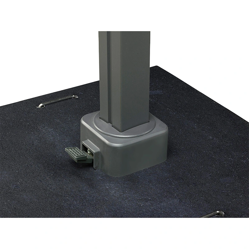 De Icon parasol is voorzien van een kantelmechanisme en is 360° draaibaar waardoor de parasol in iedere gewenste richting tegen de zon ingedraaid kan worden. De Icon zweefparasol wordt standaard geleverd zonder parasolvoet. Wij adviseren u een parasolvoet van 150 kg te gebruiken voor de Icon zweefparasol.