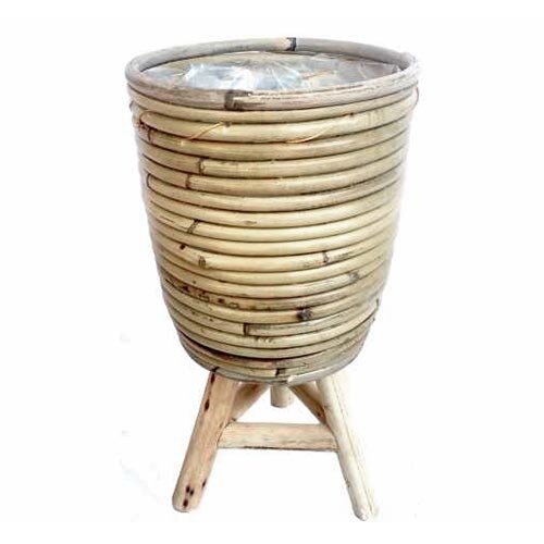 De bloempot is gemaakt van rotan en hout en heeft een neutrale kleur. De rotan bloempot is voorzien van een plastic binnenzak.