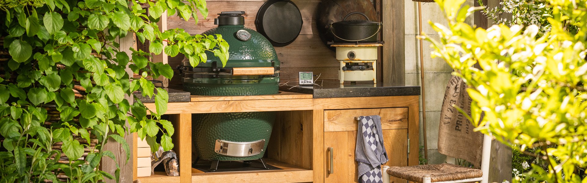 Big Green Egg is de meest geliefde kamado BBQ van de allerbeste keramiek. Big Green Egg is het origineel sinds 1974. De mogelijkheden van de EGG zijn grenzeloos. De keramiek van de Big Green Egg is mede ontwikkeld door NASA en van de hoogste kwaliteit. Daarom krijg je ook een levenslange garantie. De kwaliteit zie je ook terug in het gebruik. In de Big Green Egg kun je de temperatuur tussen de 70° Celsius en 350° Celsius tot op de graad nauwkeurig reguleren en behouden, zelfs bij temperaturen ver onder het vriespunt. Naast grillen, bakken, stomen, wokken en roken is de Big Green Egg ook gemaakt voor slow cooking van grotere stukken vlees. Met de keramische convEGGtor bouw je de Big Green Egg heel eenvoudig om tot een oven. De mogelijkheden zijn eindeloos: probeer ze allemaal en laat je creativiteit de vrije loop!