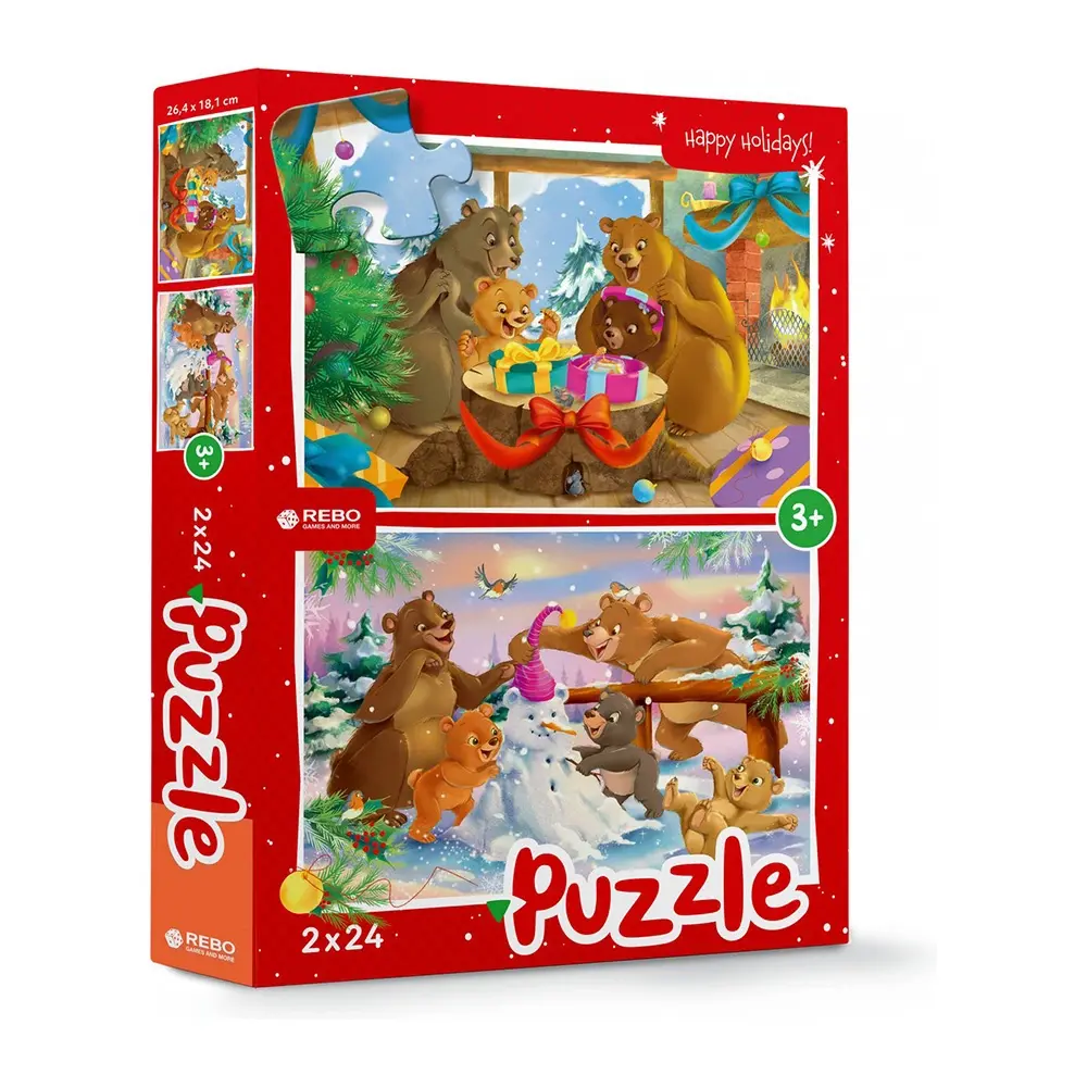 De Rebo Chrismas Bears - Puzzel 2 x 24 st. bestaat uit twee puzzels van 24 stukjes en is geschikt vanaf 3 jaar.