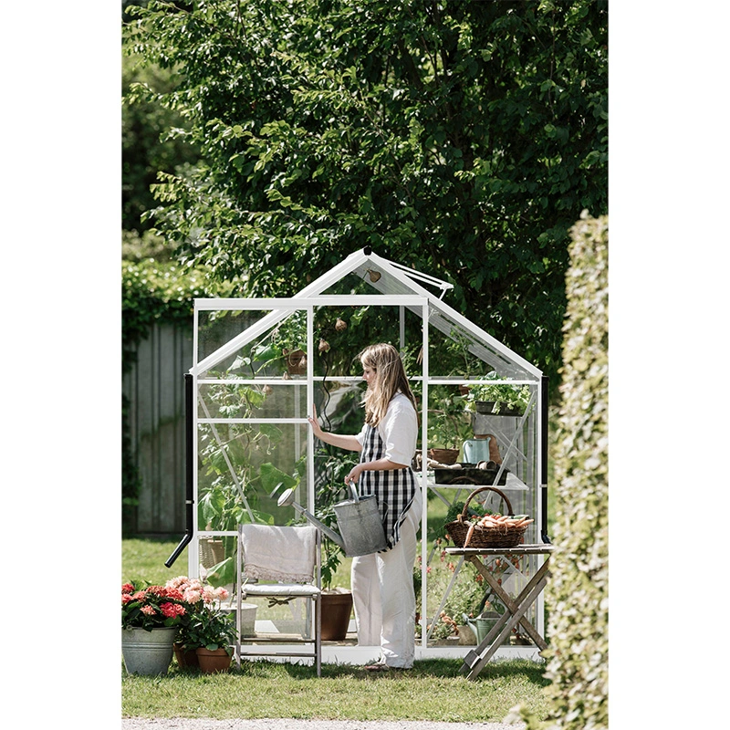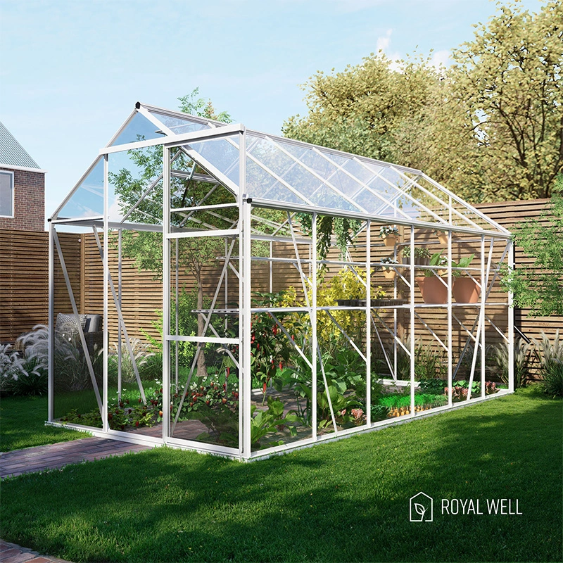 Tuinkas Kate van Royal Well is de ideale keuze voor zowel beginnende als ervaren kwekers die op zoek zijn naar een praktische en veelzijdige kas. Dit instapmodel met puntdak en schuifdeur biedt alles wat je nodig hebt voor een succesvolle kweekervaring. Het 3 mm dikke veiligheidsglas wordt stevig bevestigd met dempend foamtape aan de binnenzijde en PVC beglazingstrips aan de buitenzijde, die eenvoudig te installeren zijn en uitgevoerd in de kleur van de profielen. De geïntegreerde fundering van tuinkas Kate zorgt voor een comfortabele instap.