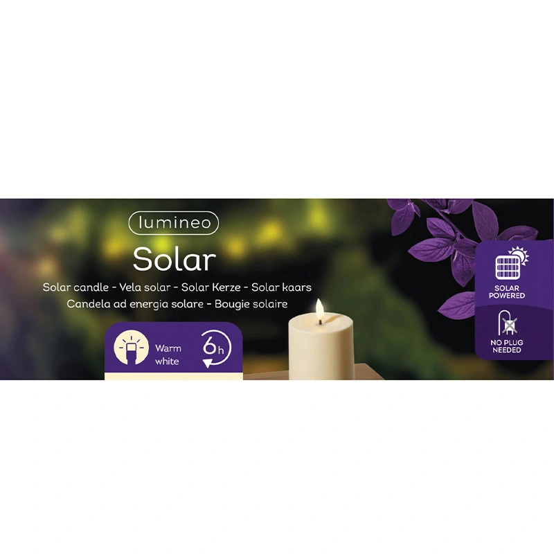 Geniet van een sfeervolle verlichting in je tuin of op je terras met deze Solar Buitenkaars Kunststof Creme - Ø7x15 cm. Deze compacte kaars van duurzaam kunststof is ideaal voor op tafel, het balkon of in de tuin. Dankzij zonne-energie laadt hij zichzelf overdag op en schakelt hij automatisch in bij schemering. Het witte LED-licht zorgt voor een rustige en warme ambiance, zonder gedoe met kaarsvet of open vuur.