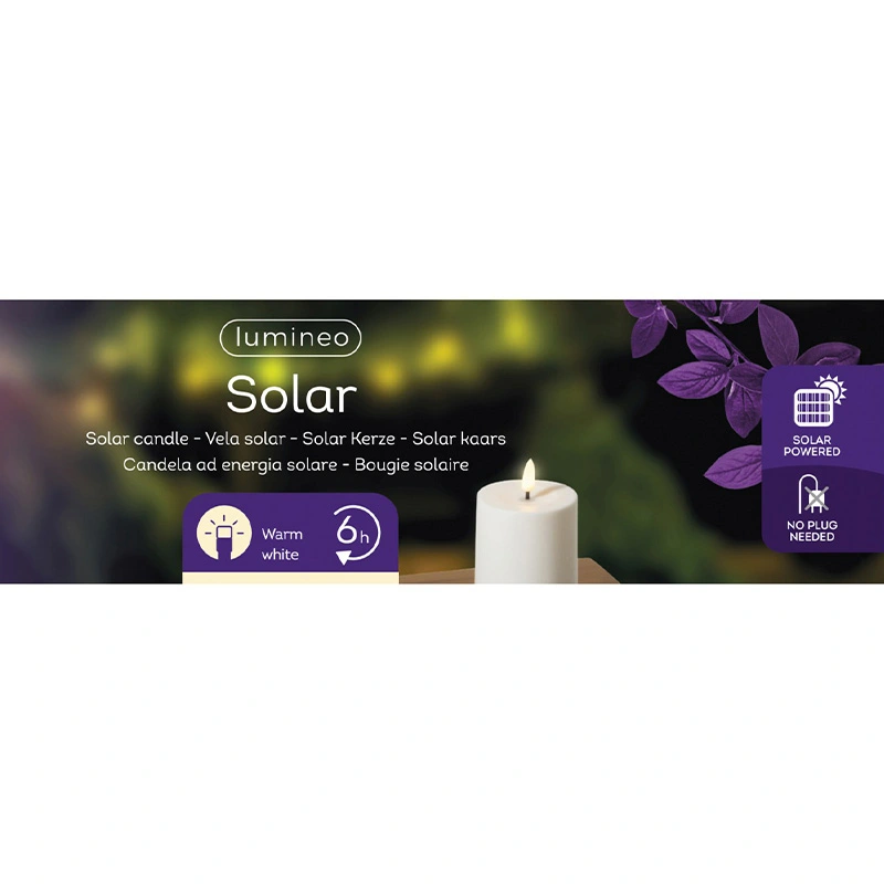 Geniet van een sfeervolle verlichting in je tuin of op je terras met deze Solar Buitenkaars Kunststof Wit - Ø7x15 cm. Deze compacte kaars van duurzaam kunststof is ideaal voor op tafel, het balkon of in de tuin. Dankzij zonne-energie laadt hij zichzelf overdag op en schakelt hij automatisch in bij schemering. Het witte LED-licht zorgt voor een rustige en warme ambiance, zonder gedoe met kaarsvet of open vuur.