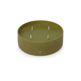 Deze Glow kaars met vier wieken is gevuld met +70% plantaardige was.