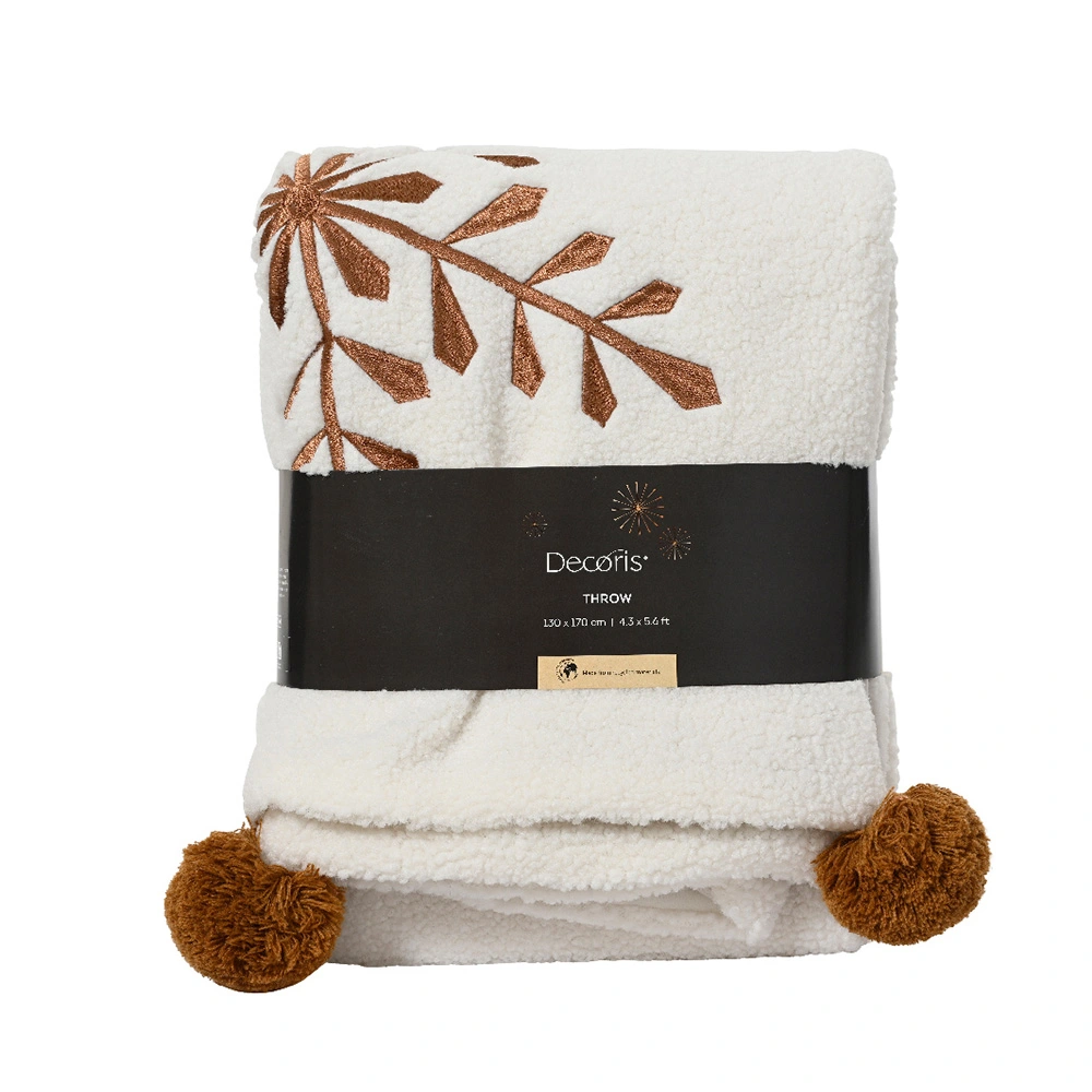 De Sprei Sneeuwvlok 170x130 - Wit van Decoris heeft een neutrale kleur met een sneeuwvlok er op. Als woonaccessoire, 's avonds op de bank of voor buiten onder de veranda, een sprei komt altijd van pas!