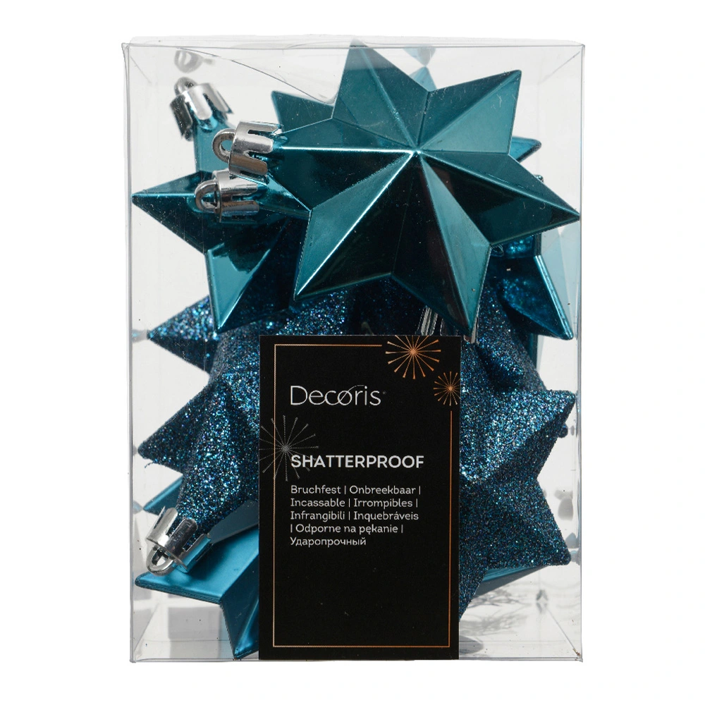 Creëer een unieke kerstboom met de Sterren Mix 12 st. - Folk Blue van Decoris! Deze plastic kersthangers zijn een echte eyecatcher in de boom. De kersthanger is gemaakt van kunststof en dus ook veilig voor kinderen en huisdieren.