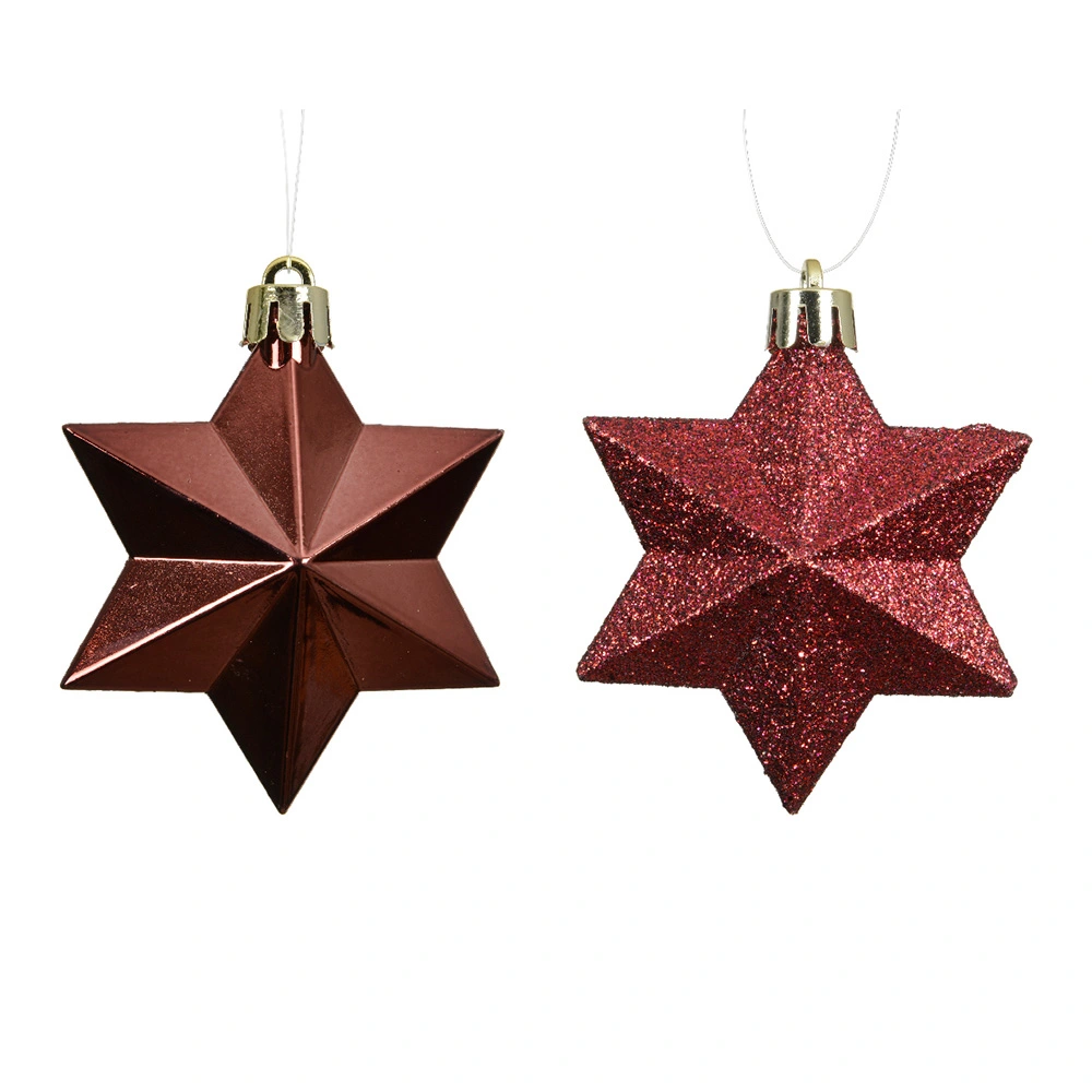 Creëer een unieke kerstboom met de Sterren Mix 12 st. - Maroon van Decoris! Deze plastic kersthangers zijn een echte eyecatcher in de boom. De kersthanger is gemaakt van kunststof en dus ook veilig voor kinderen en huisdieren.