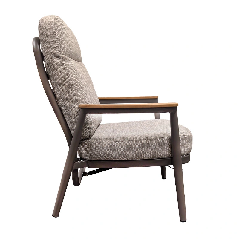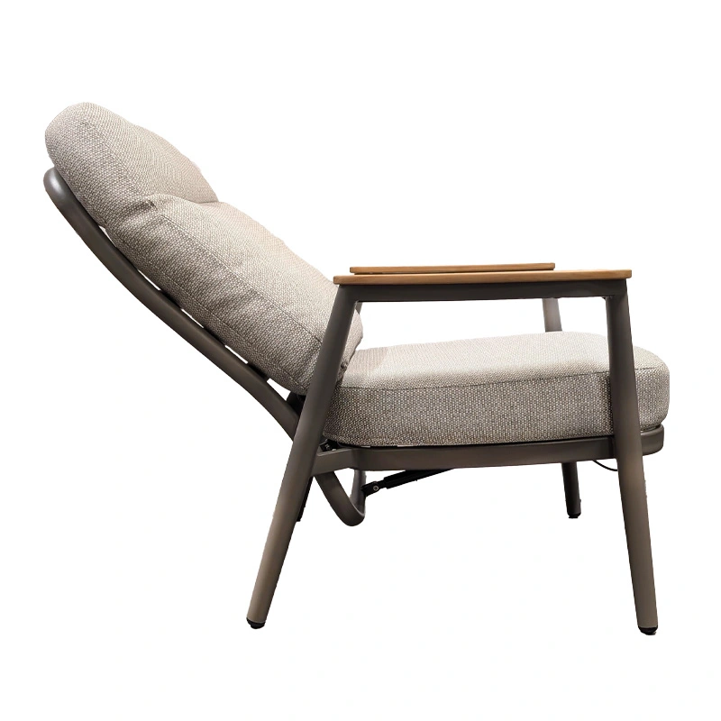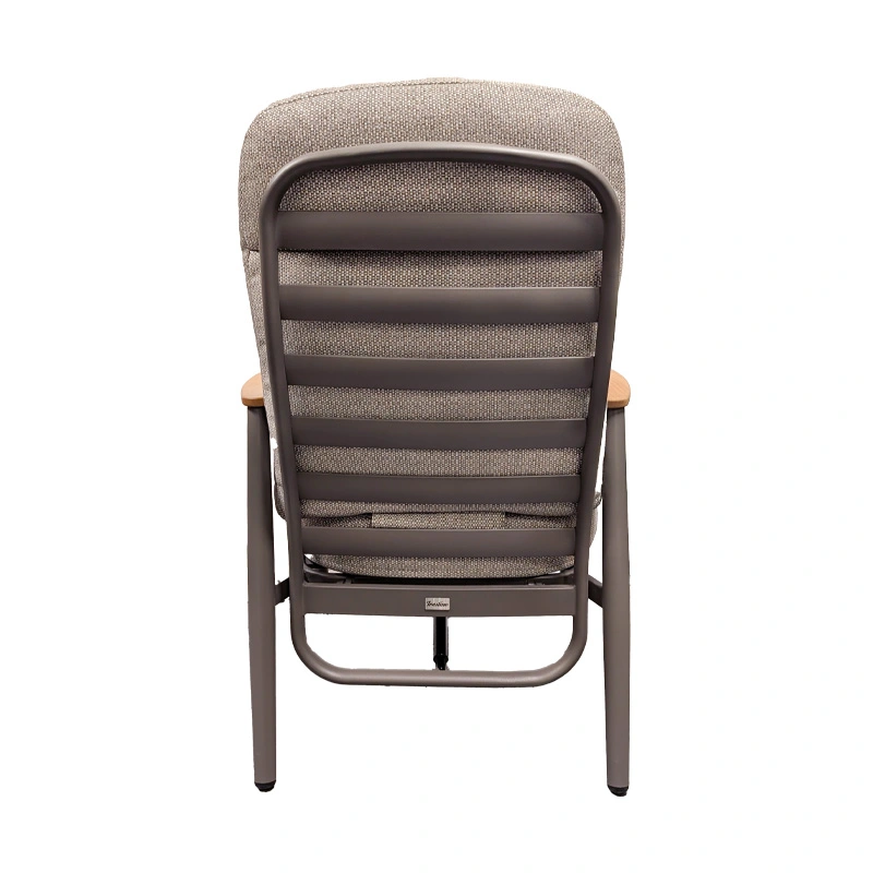 Geniet optimaal van lange avonden in de tuin met de Trestino Alassio Verstelbare Diningstoel - Taupe. De stoel combineert een stevig aluminium frame met stijlvolle teak armleuningen, wat zorgt voor een moderne en warme uitstraling.