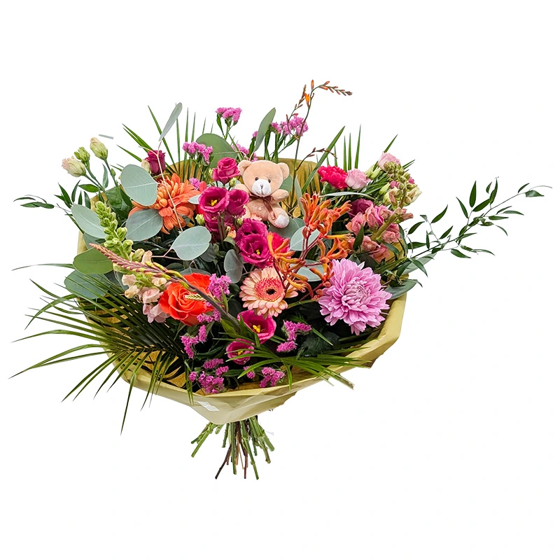 Onze boeketten worden samengesteld op basis van het dagverse aanbod snijbloemen. De boeketten kunnen daarom afwijken van de foto. De grootte en kleurstelling van het boeket is wel hetzelfde.