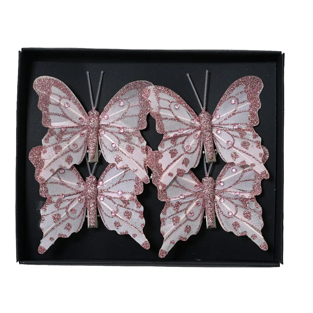 Creëer een unieke kerstboom met de Vlinder op Clip Glitters Poederroze - 4 st. van Decoris! Deze roze kerstclip is een echte eyecatcher in de boom. De kerstclip is gemaakt van kunststof en dus ook veilig voor kinderen en huisdieren.