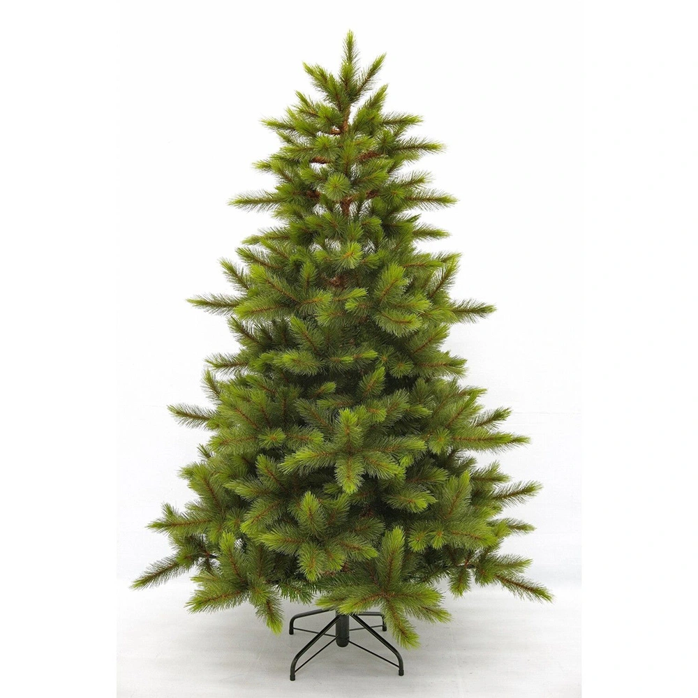Deze groene kunstkerstboom is voorzien van harde en zachte naalden en de takken hebben kleine zijtakjes met uitgroeiingen, net echt!